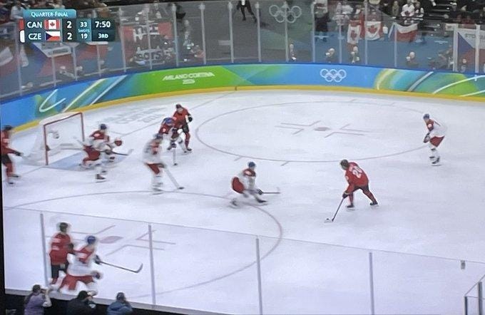 Shortly after Canada came back to beat the Czechs in the semi-final, this image appeared online showing the Czechs had too many men on the ice when they scored their third goal.